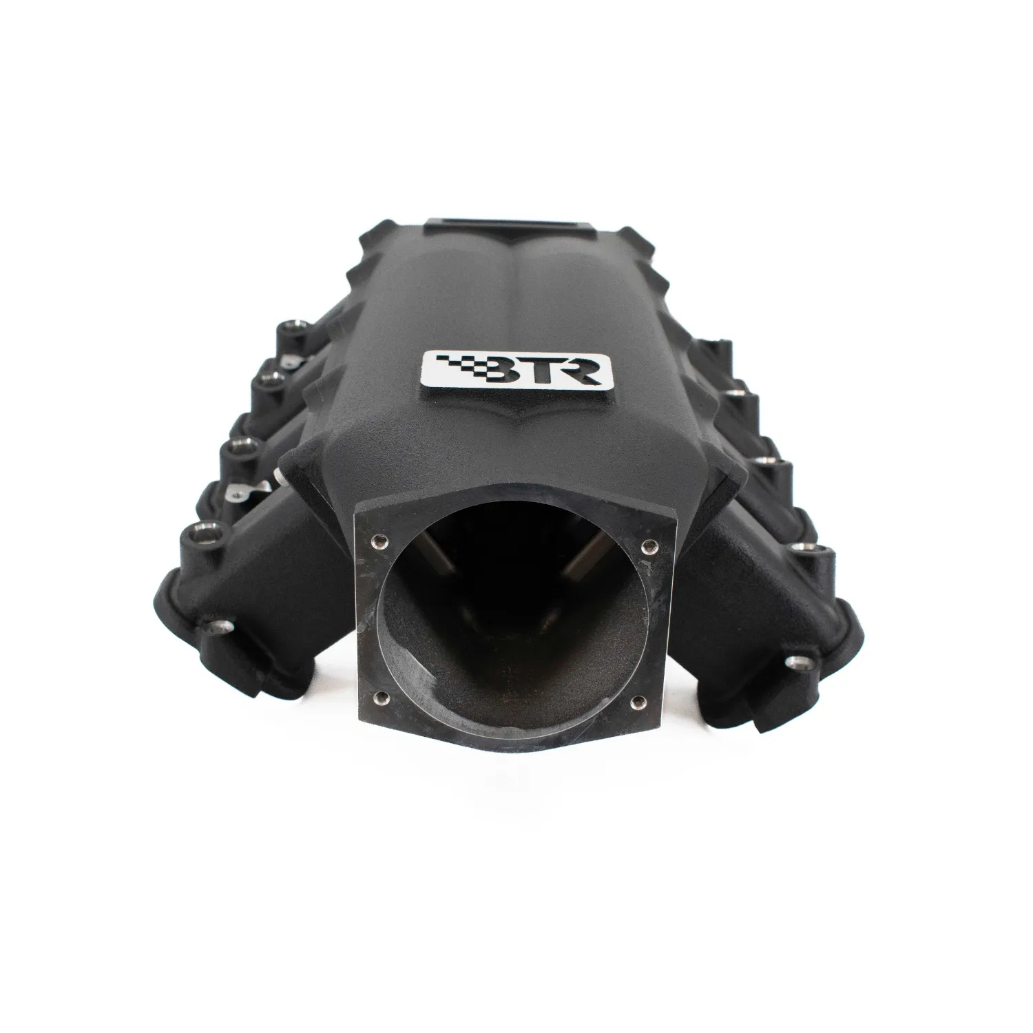 The latest offering from BTR in high quality cast aluminum intake manifolds! TheTRInity is short runner, 3-piece design that allows for the ultimate in application flexibility. It is similar in concept to billet Intakes costing thousands more. Optimum operating range is 6000-8500 rpm and is primarily intended to bridge the gap between N/A and Boosted applications. It utilizes the high LT1 throttle body position and will accept DBW or cabled throttle bodies*, but yet it will fit in the tight confines of the C7, C6, C5 Corvette as well as the popular F-body platforms. The design incorporates 2 runners and an interchangeable plenum. The seal is generated by 8 entrapped o’rings at the runner/plenum interface, and is clamped by 20 -M6 Stainless steel socket head cap screws. The port seals are achieved SAE o’rings seated in a dovetailed o’ring groove. Both the port mouth radius and the port match is CNC machined. The TRInity incorporates 2-1/4 -27 NPT ports on the side of the throttle body boss and a 3/8-18” NPT on the rear. The manifold is available in Black Satin Texture powder coat. The manifold comes semi-assembled and includes all the hardware required to bolt it on. Runners and plenums can be purchased separately.