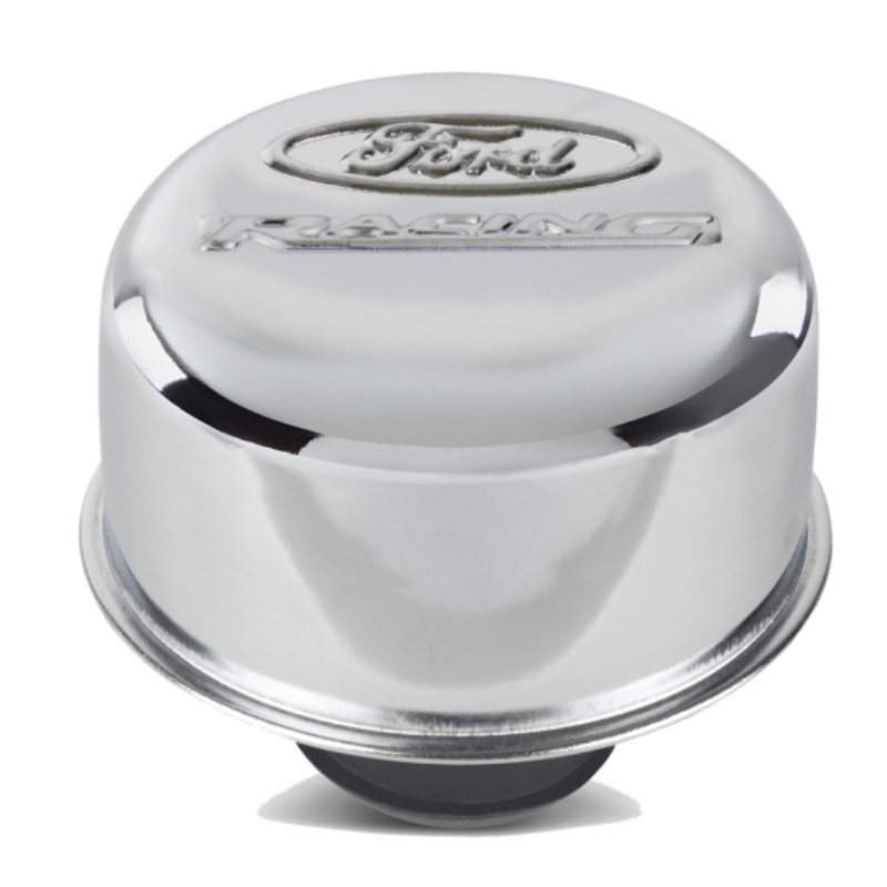 Air Breather Cap; Chrome Finish; Push-In; Ford Racing Logo;
