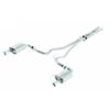 This cat-back exhaust system with integral X-pipe bolts directly to the stock factory catalytic converters, making your Mustang 100% emission compliant while providing an aggressive muscle car sound. The tuned stainless steel mufflers with 4″ black chrome-plated stainless steel tips not only sound great but look great too.