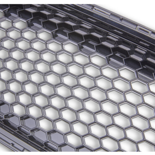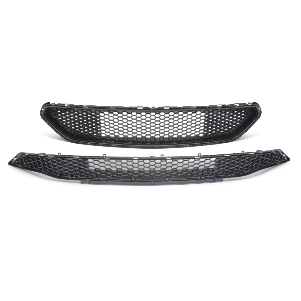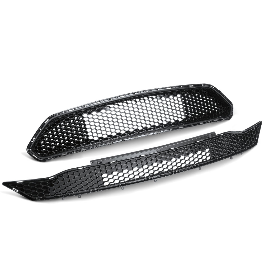 Fits 2018-2020 Mustang direct bolt-on replacement; Standard Bullitt front grille modified to create an all-black appearance. Kit includes: Upper grille (modified in all-black finish); Lower grille